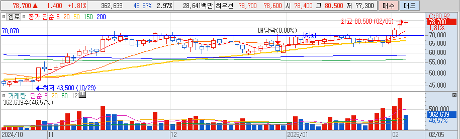 --> 매수 이유 : 작년 8월쯤 추추 목표가 였는데 당시에는 한화에어로 사면서 방산 겹침에 따라 따로 구매하지 않음, 이번에 다시 올라오기에 매수함, 기사 타이밍이 아쉬웠음 ㅠㅠ.