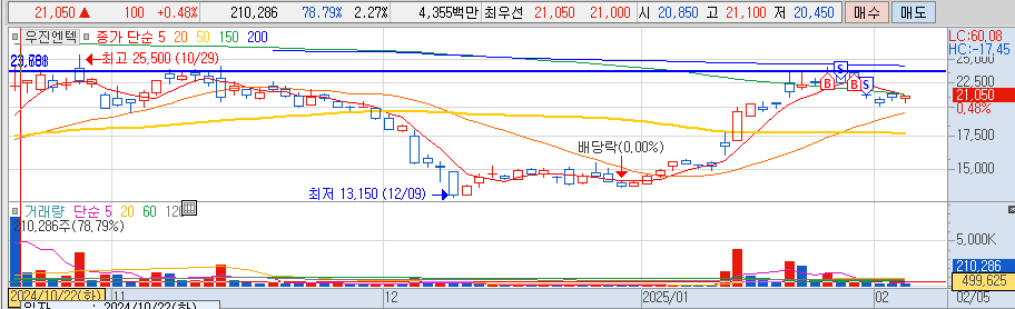 7. 우진엔텍 1/22 (추추) - 23550매수 --> 1/23 반절 손절 --> 1/24 추가매수 --> 1/31 전량 손절