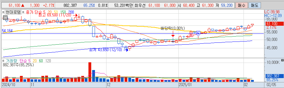 1. 현대 로템 1/7 (추추아님) - 55300매수 --> 1/9 급락에 자동 손절 (급락 이유 : 폴란드 무기 수출차질(?))