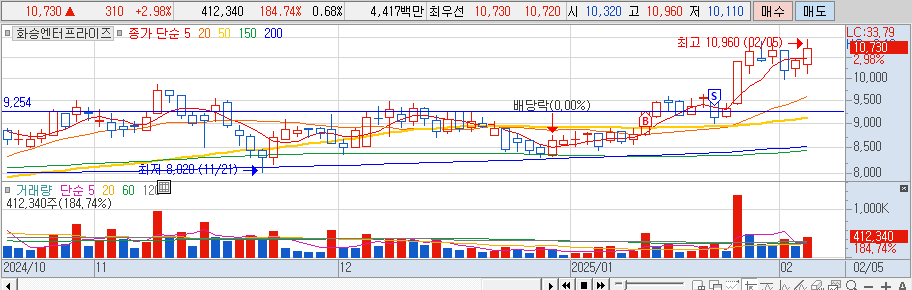 5. 화승엔터프라이즈 1/10 (추추) - 9260 매수 --> 1/20 움직임이 지지 부진하고 장대음봉 발생에 반절 거의 본전에 던짐 --> 남은 반절 현재까지 보유중 (지금 상황을 보면 걍 들고 있었어야 했음)
