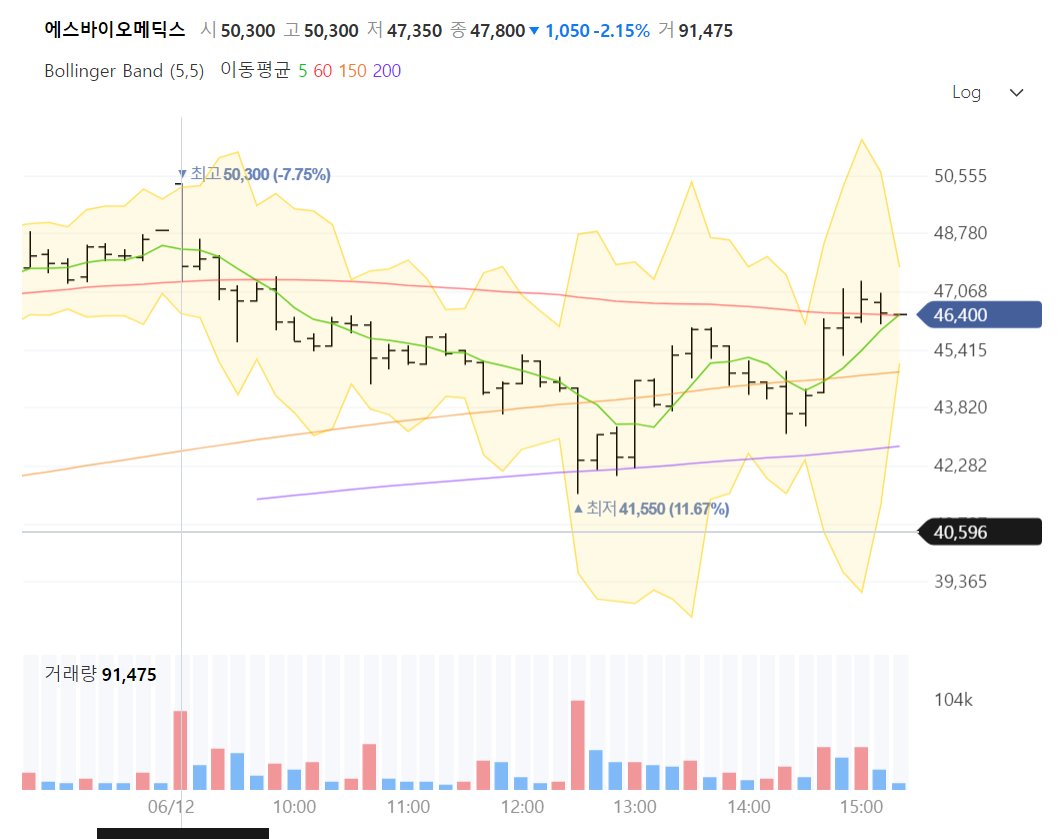 - 에스바이오메딕스 (43950) --> 위아래 VI 난리를 치더니 손절됨